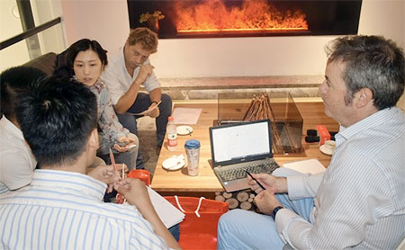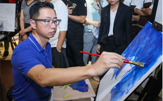 活動(dòng)還特別設(shè)置了油畫(huà)創(chuàng)作環(huán)節(jié),讓設(shè)計(jì)師們?cè)诜泵Φ墓ぷ髦喃@得身心的愉悅。李鷹先生、伊瓦諾先生和藝術(shù)家CAMILO CADENA先生、郁一一女士藝術(shù)家圍坐在圓形壁爐上認(rèn)真創(chuàng)作,仿佛置身于戶外大自然中,獲得了靈感與創(chuàng)意的來(lái)源。