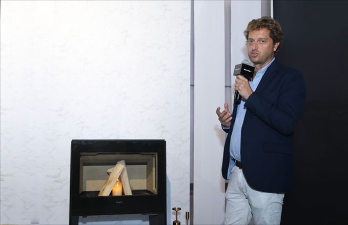 隨著主持人的開場介紹,活動正式展開。遠道而來的意大利AK47 聯(lián)合創(chuàng)始人兼銷售總監(jiān)芭芭拉女士、西班牙Hergom市場總監(jiān)German先生,意大利PALLZZETTI市場總監(jiān)Paolozulian先生向現(xiàn)場來賓們介紹了他們引以為豪的壁爐產品。