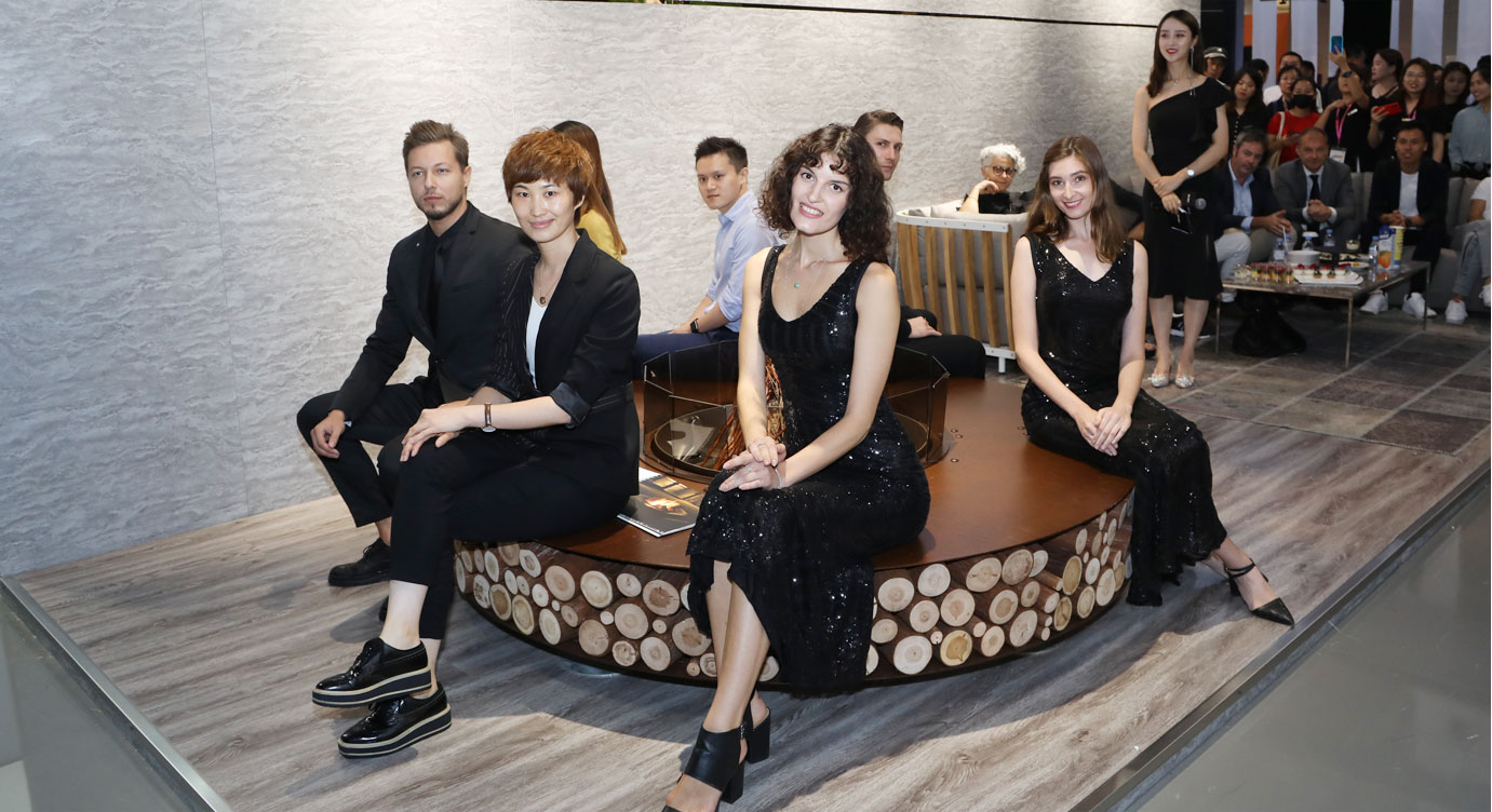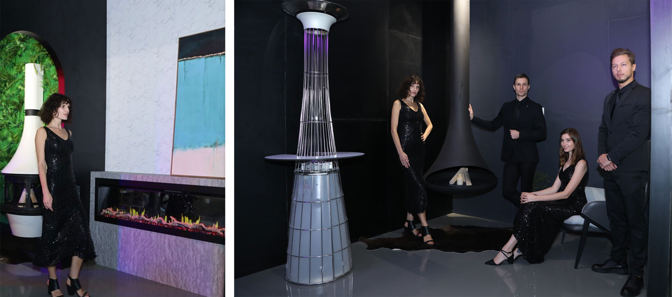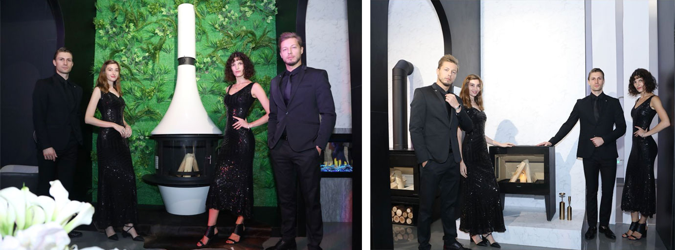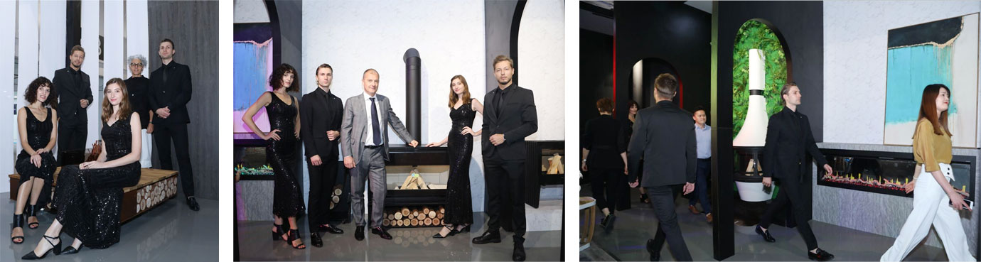 緊隨著?四位嘉賓的介紹,外籍模特從活動場地中間——亦是此次AK47的展品之一Zero圓形壁爐兩側相向而行,與各款產品互動演繹,以曼妙的身姿詮釋壁爐的藝術氣質,帶領來賓一一了解每款產品的精妙獨到之處。